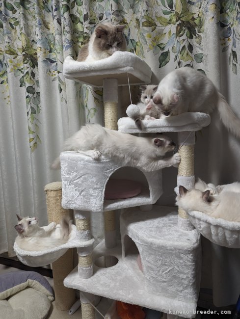 少数育成だからこそ、全てのにゃんずに目が届き、一匹一匹に十分な愛情を注げます。健康管理や生活習慣を細やかに見守りながら、信頼関係を築く時間を大切にしています。穏やかで豊かな表情のラグドールに育つのは、この丁寧な暮らしがあってこそです。